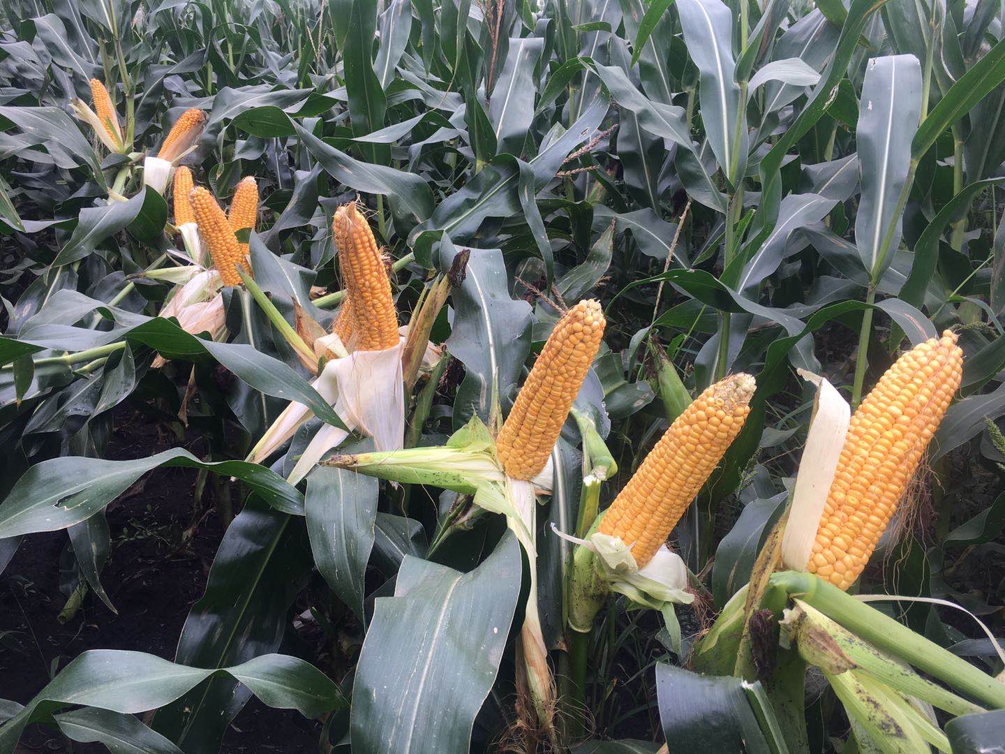 【特征特性】在適應區出苗至成熟生育日數為107d左右,需≥10℃活動積溫2020℃左右。株高230cm左右,穗位高80cm左右,成株可見12片葉。果穗筒型,穗軸白色,穗長18.5cm左右,穗粗4.8cm左右,穗行1216行,籽粒偏馬齒形、黃色,百粒重36g左右。兩年品質分析結果:容重762791g/L
